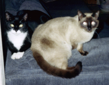 | These two characters are full of mischief. The black and white one is Mix, and CoCo Chanell is a Chocolate Point Tonkanese. | |||||||||||||||||